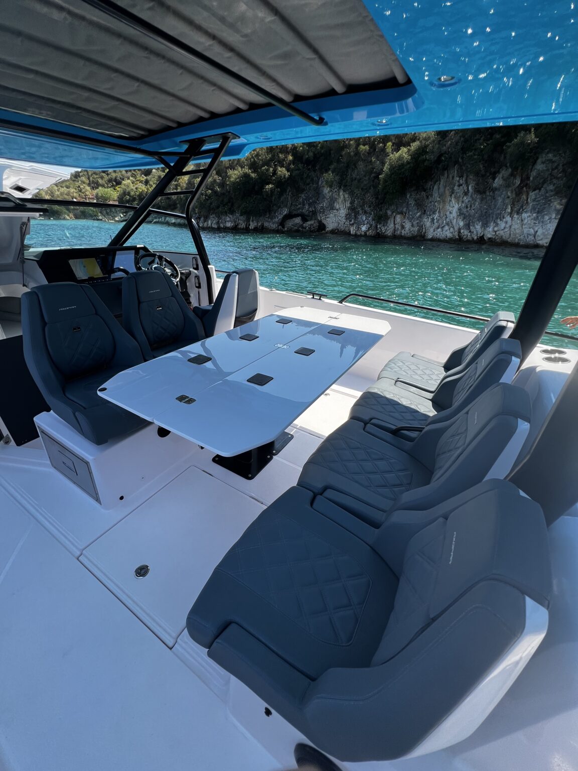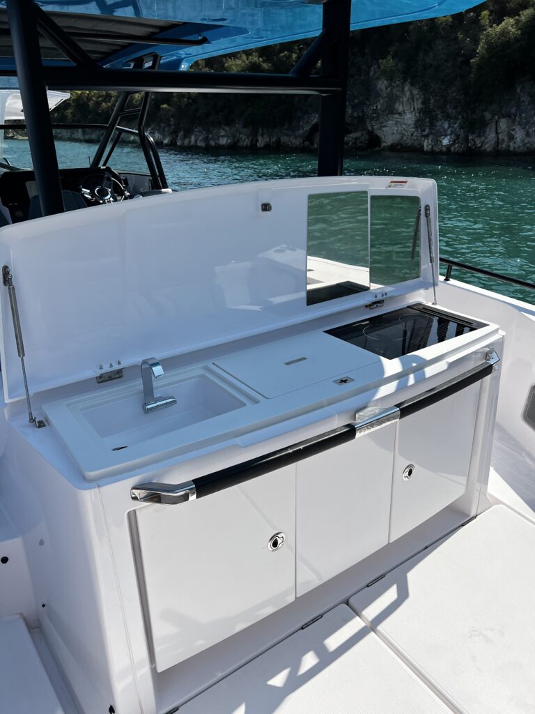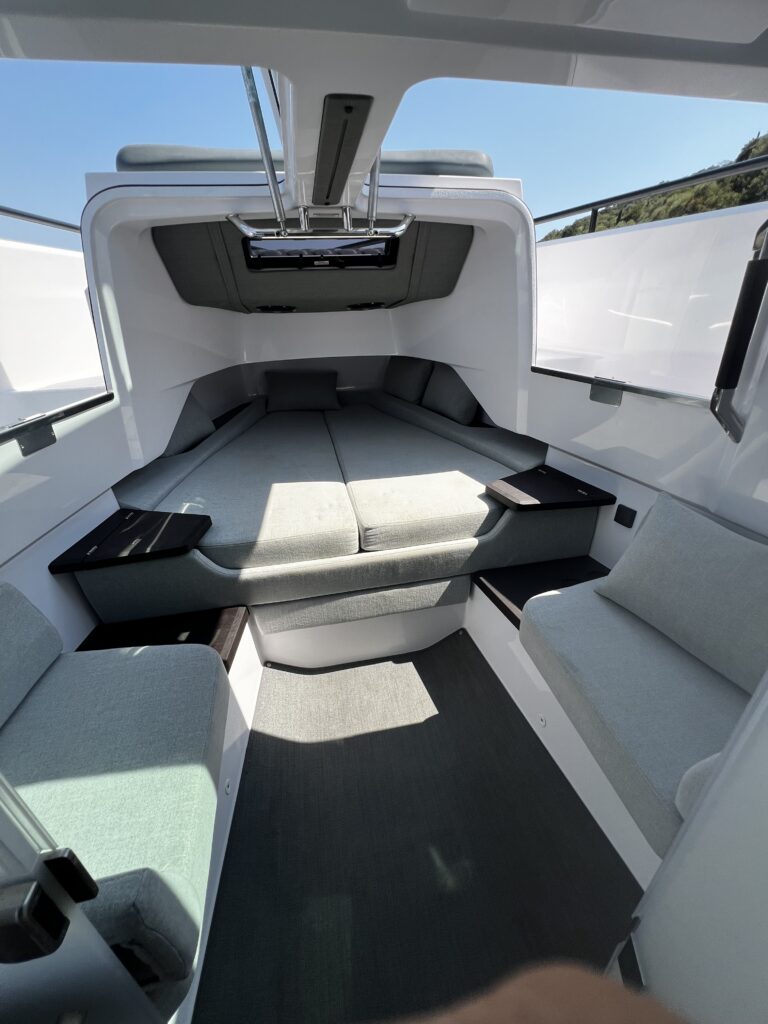 Vă prezentăm noul 2023 Axopar 37 Brabus Edition - combinația perfectă de lux, performanță și stil. Propulsat de două Mercury Verados de 300 CP cu joystick de control, este ideal pentru până la 12 pasageri.