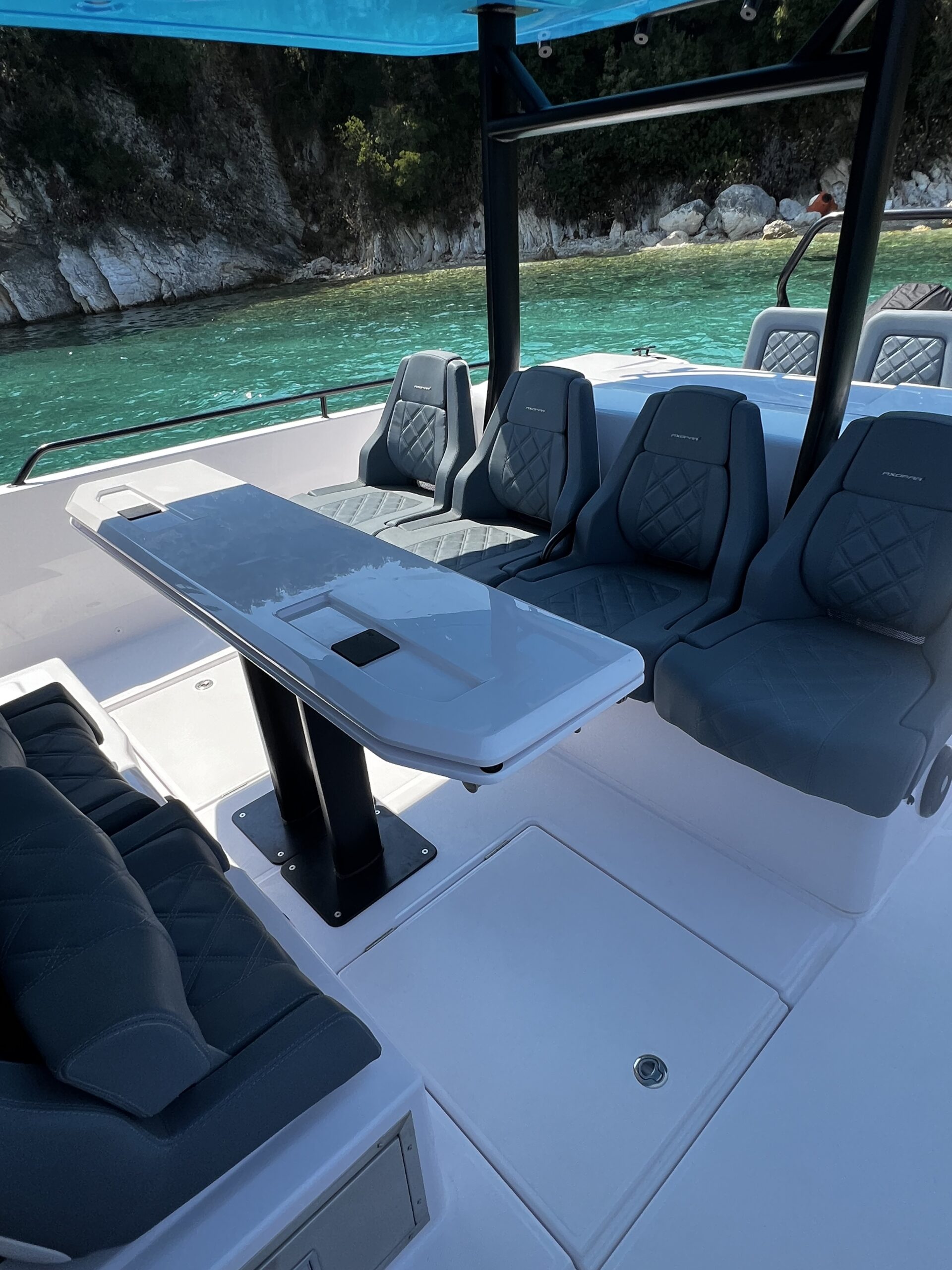 Vă prezentăm noul 2023 Axopar 37 Brabus Edition - combinația perfectă de lux, performanță și stil. Propulsat de două Mercury Verados de 300 CP cu joystick de control, este ideal pentru până la 12 pasageri.